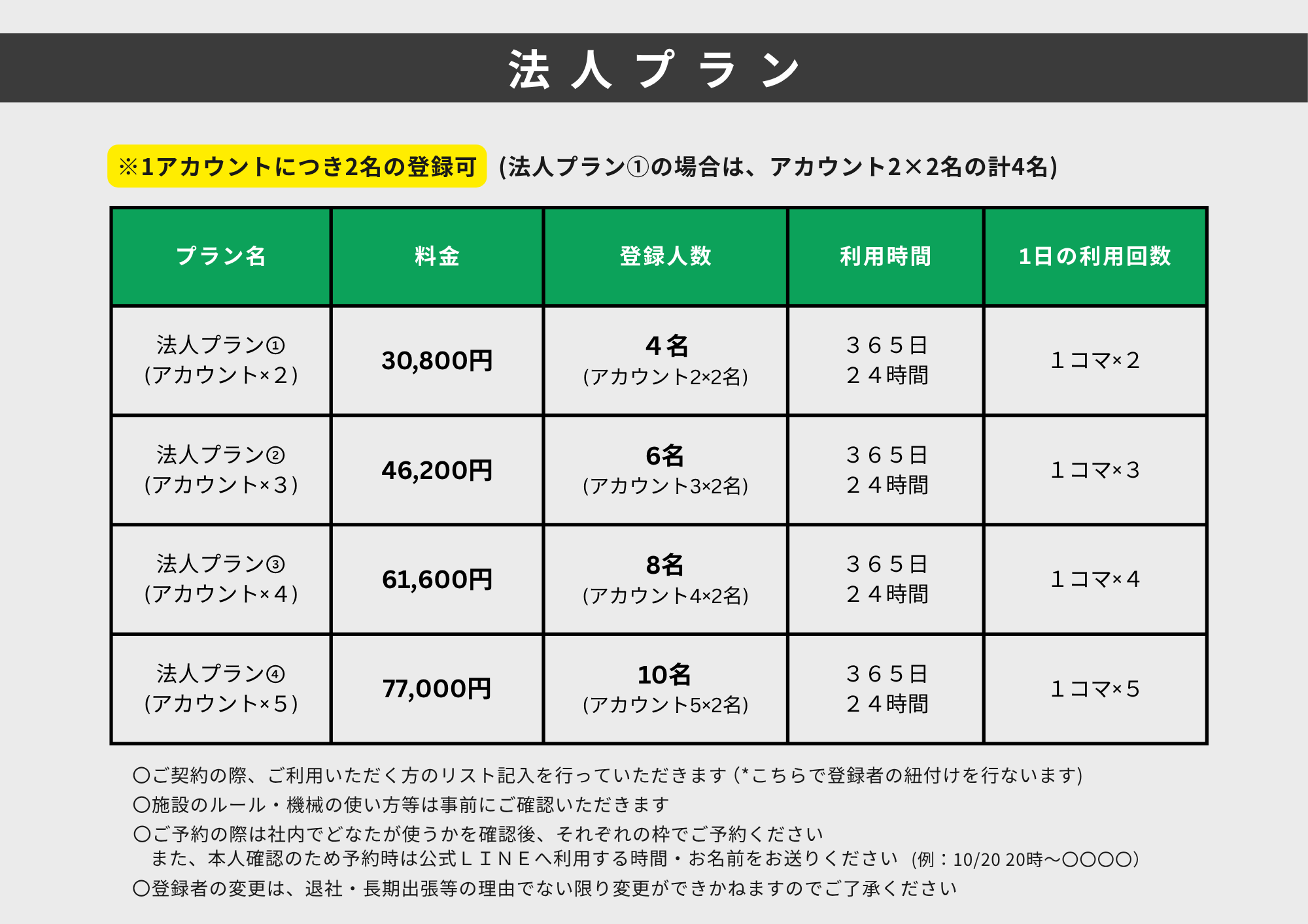 10月より下記画像の内容にて法人プランの受け付けを開始いたします。